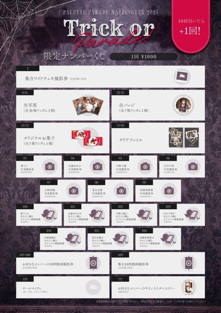 2025年10月30日Veats SHIBUYにて行われた「Trick or Parade!」を始めとするパレパレのハロウィン関連画像をまとめました。色々な姿に変身したメンバーが可愛いですね。
